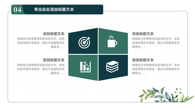 简介:记事本风格教育课件ppt模板,本模板共23P,卡通风记事本、水彩花卉、铅笔标题文字封面、目录页、过渡页,墨绿配色,扁平化图表,适合教师工作总结、公开课、教学课件等场景应用的教育教学通用ppt模板。标签:记事本,教育课件。