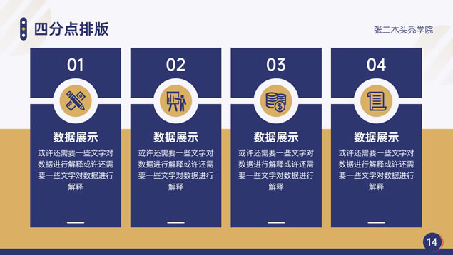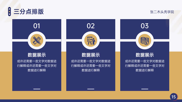 简介:蓝金高端扁平教育教学工作总结计划ppt模板,本模板共49P,教室大图背景,几何图形线条大标题文字创意设计封面、过渡页,蓝金配色,扁平化设计,精美图表图文排版,适合教学展示、授课课件、教师工作汇报、论文答辩演讲等应用场景,“P界达人”二木作品。标签:教育教学,教学课件。