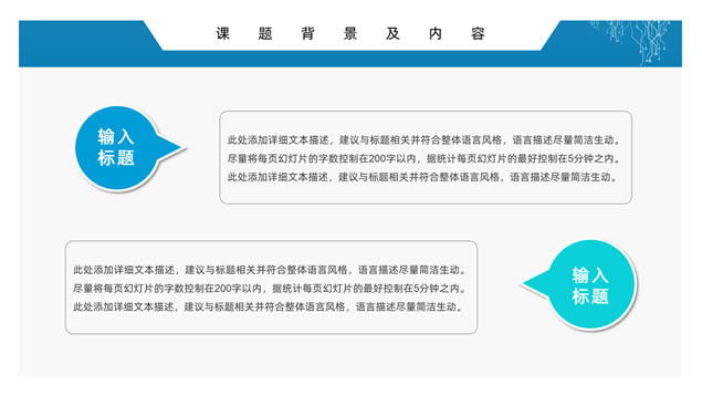 简介:蓝色科技风论文答辩通用ppt模板,本模板共25P,目录:课题背景及内容、课题现状及发展、研究思路及过程、研究数据及结果、参考文献与论文总结,科技风创意设计封面、过渡页,科技蓝配色学术风版式内容页,适合论文答辩、毕业汇报等场景应用的毕业答辩通用ppt模板。标签:论文答辩。