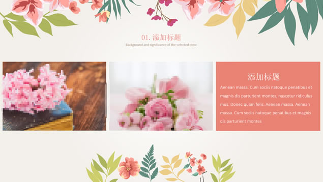 花卉植物清新雅致述职报告ppt模板,本模板共21P,目录:工作进度、取得成绩、存在不足、工作计划,