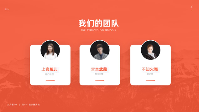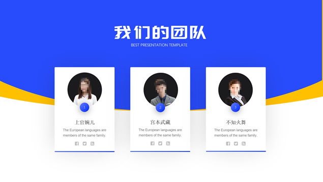 简介:我们的团队——10张团队人物介绍排版方案ppt模板,本模板共10P,版式风格包括:卡片式风格、时尚风、流体几何风、科技风等,适合团队介绍、团队核心人物宣传场景应用的ppt模板。标签:我们的团队,团队,人物介绍。